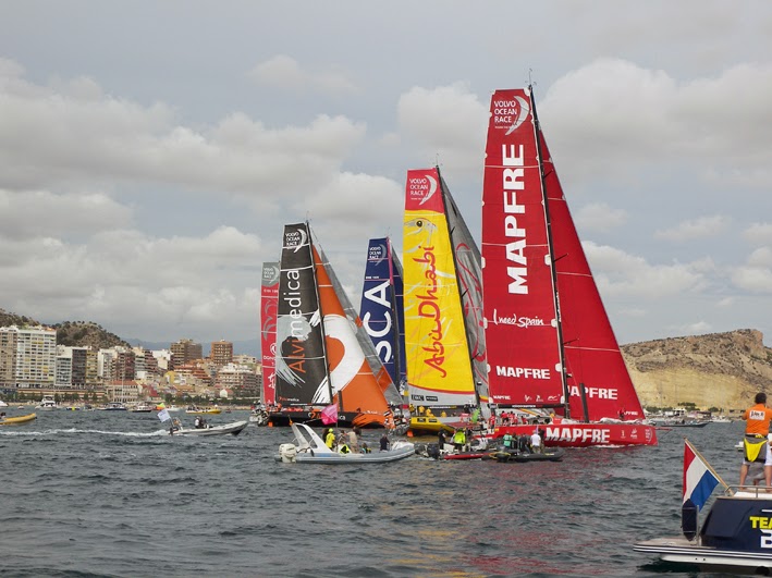 Los barcos van soltando amarras. Vestas, Mapfre, Alvimedica, DongFeng, Brunel, Abu Dhabi y SCA abandonan, por este orden, el pantalán de la VOR en Alicante hacia mar abierto para comenzar, en menos de una hora, la regata más importante de vuelta al mundo.