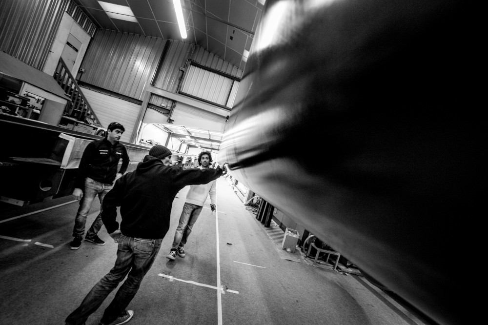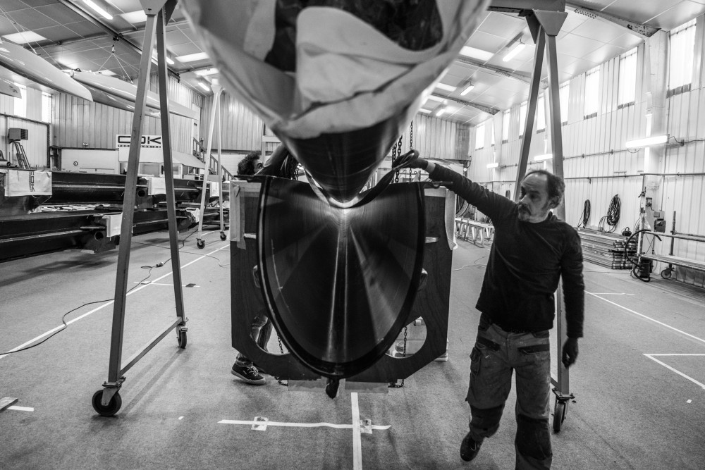 Extracción del mástil del molde, marzo 2015 © Eloi Stichelbaut/Spindrift racing