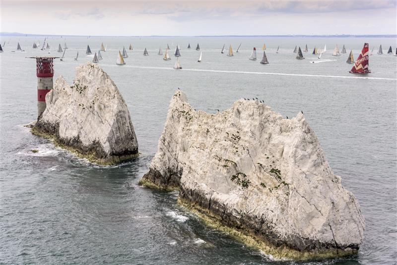 Al frente de la carga, aunque no compitiendo por la Rolex Fastnet Race, el maxi trimarán Spindrift 2 salía con la expectativa de doblegar a sus oponentes, que en su mayoría apenas alcanzaban la mitad de su eslora de 131 pies (40 metros). Sólo el Prince de Bretagne (80 pies ó 24,4 metros) osó amenazar al coloso suizo, especialmente cuando rodearon las Scillies en el tramo final. Co-patroneado por Dona Bertarelli y Yann Guichard, el Spindrift 2 sería el primero en cruzar la línea de meta tras 2 días, 10 horas, 57 minutos y 41 segundos, más de un día por debajo de su propio récord, establecido en 2011.