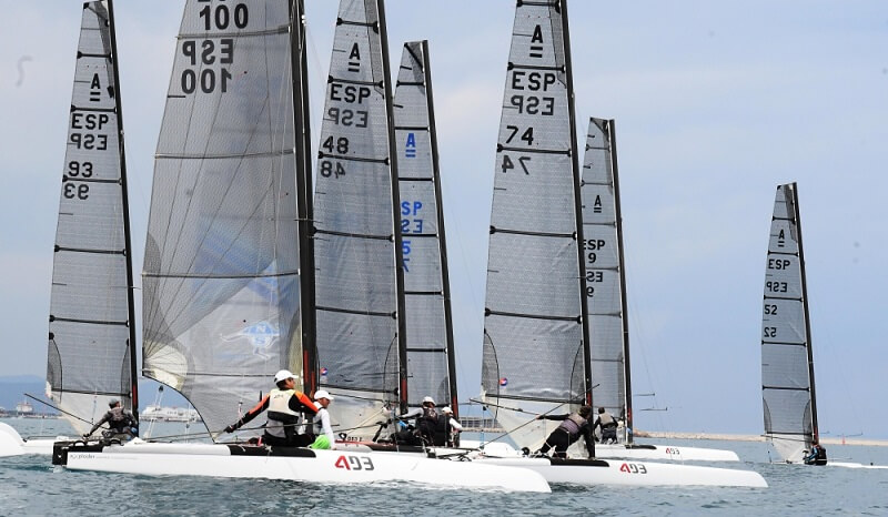 Con las mediciones oficiales se inicia el campeonato de España en el Hotel Roc Doblemar en el que toman parte cerca de 80 regatistas repartidos entre las clase dobles Hobie…