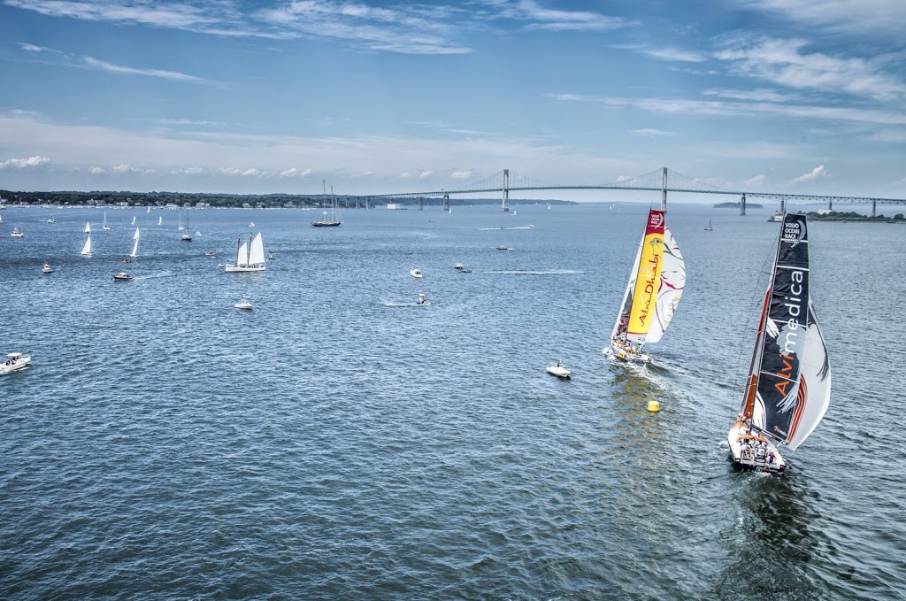 El Azzam y el Team Alvimedica abandonando Newport © Sam Greenfield/Volvo Ocean Race Dos de los equipos que competirán en la próxima Volvo Ocean Race han salido esta mañana del…